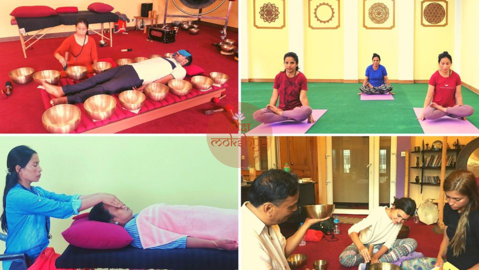 Mokshya directive is provided through a set of workshops. Our training ranges from 15 days (360 hours) to 30 days (720 hours) for Yoga and 4 to 6 days for a sound healing course. We are not providing any training for Reiki as of now but offer Reiki healing sessions.